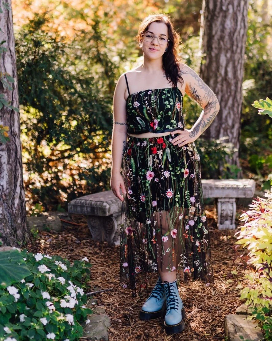 Rory is a multidisciplinary artist and musician located in Lincoln, Nebraska. She received her BFA in Studio Art from the University of Nebraska-Lincoln in 2015. Her focus is on traditional oil painting reminiscent of Dutch still life paintings of the late 1600s paired with fiber arts to upend expectations in a comforting way. Her compositions reflect the idea that you cannot have light without dark – the coldest, darkest winters cause us to dream about the warmth of summer. Moments of laughter heal the soul crumbling from loss, but too much light can burn our eyes and leave us feeling exposed. This most innate dynamic of human existence is captured through the vibrant depiction of flowers, fruit and skulls on a dark background frequently accompanied with felt, embroidery, and a crocheted yarn frame.