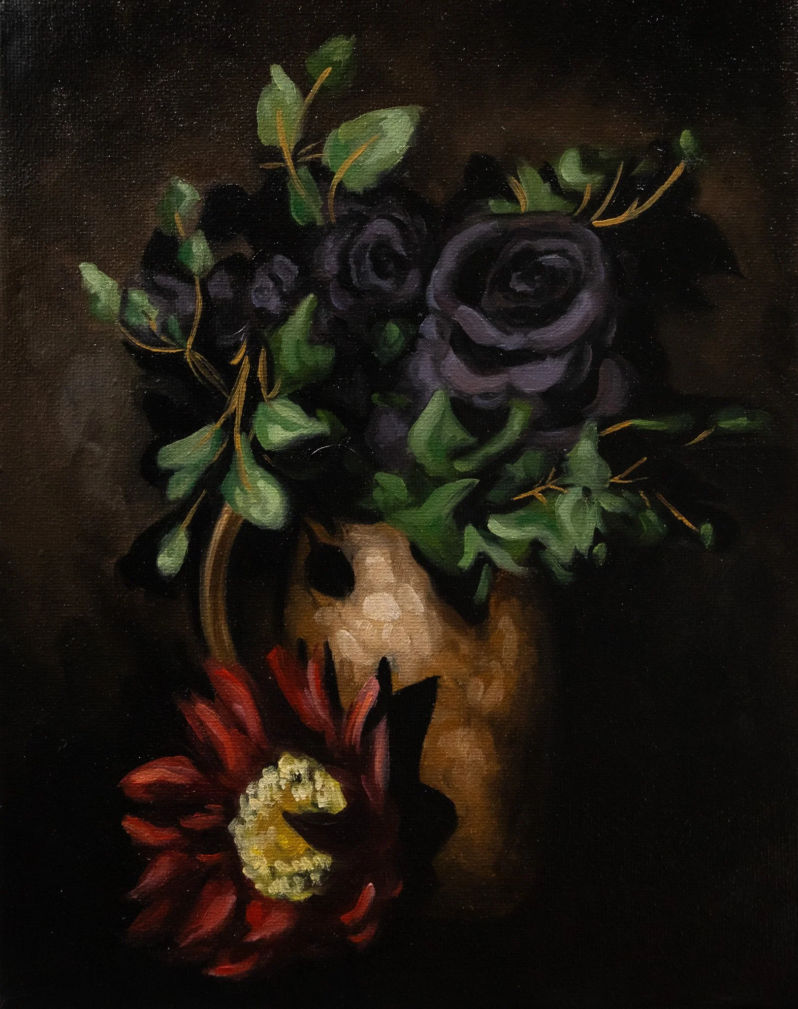 Black Roses in Pitcher, Oil on canvas, 8x10”, 2023